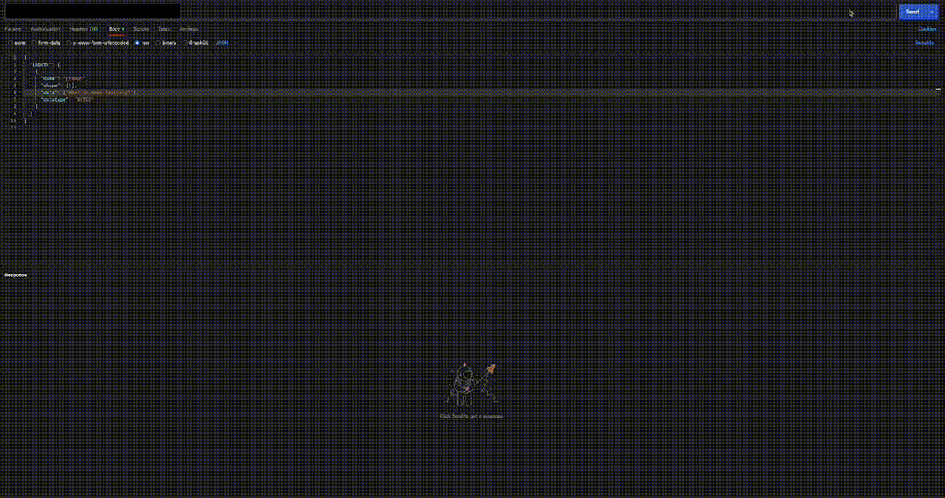 def infer: This function gets called for every request that you send. Here you can define all the steps that are required for the inference. You can also pass custom values for inference and pass it throughinputs(dict)parameter. -