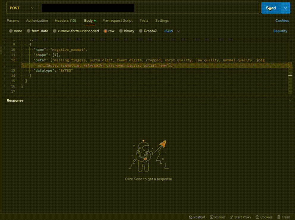 def infer: This function gets called for every request that you send. Here you can define all the steps that are required for the inference. You can also pass custom values for inference through theinputsparameter. -