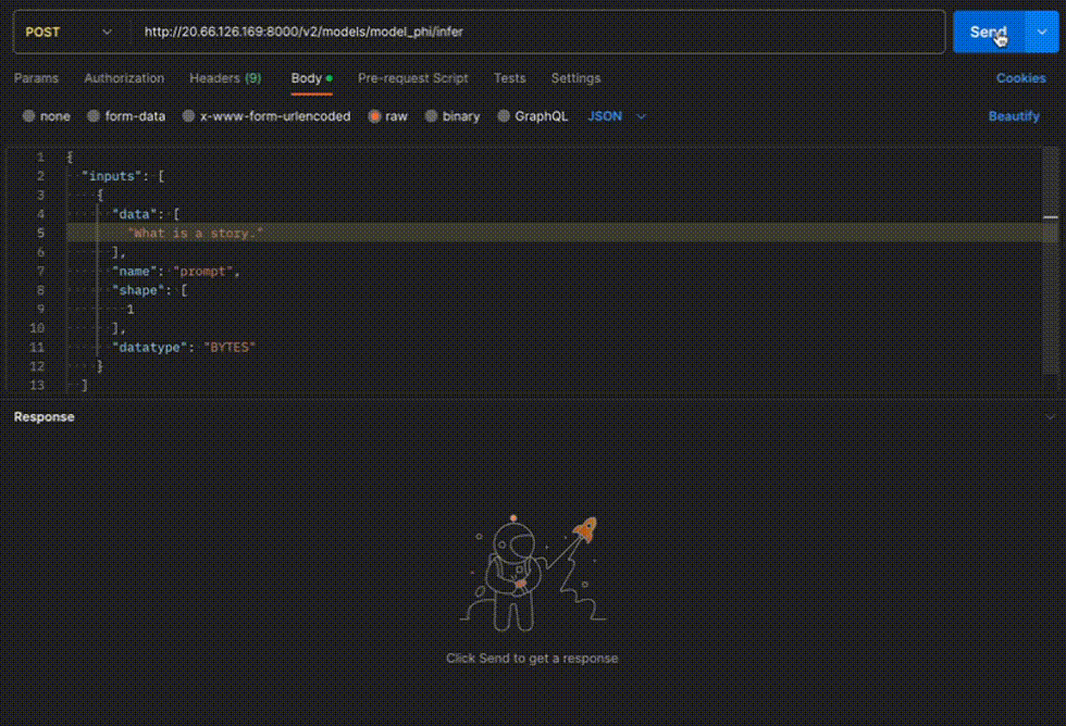 def infer: This function gets called for every request that you send. Here you can define all the steps that are required for the inference. You can also pass custom values for inference and pass it throughinputs(dict)parameters. -