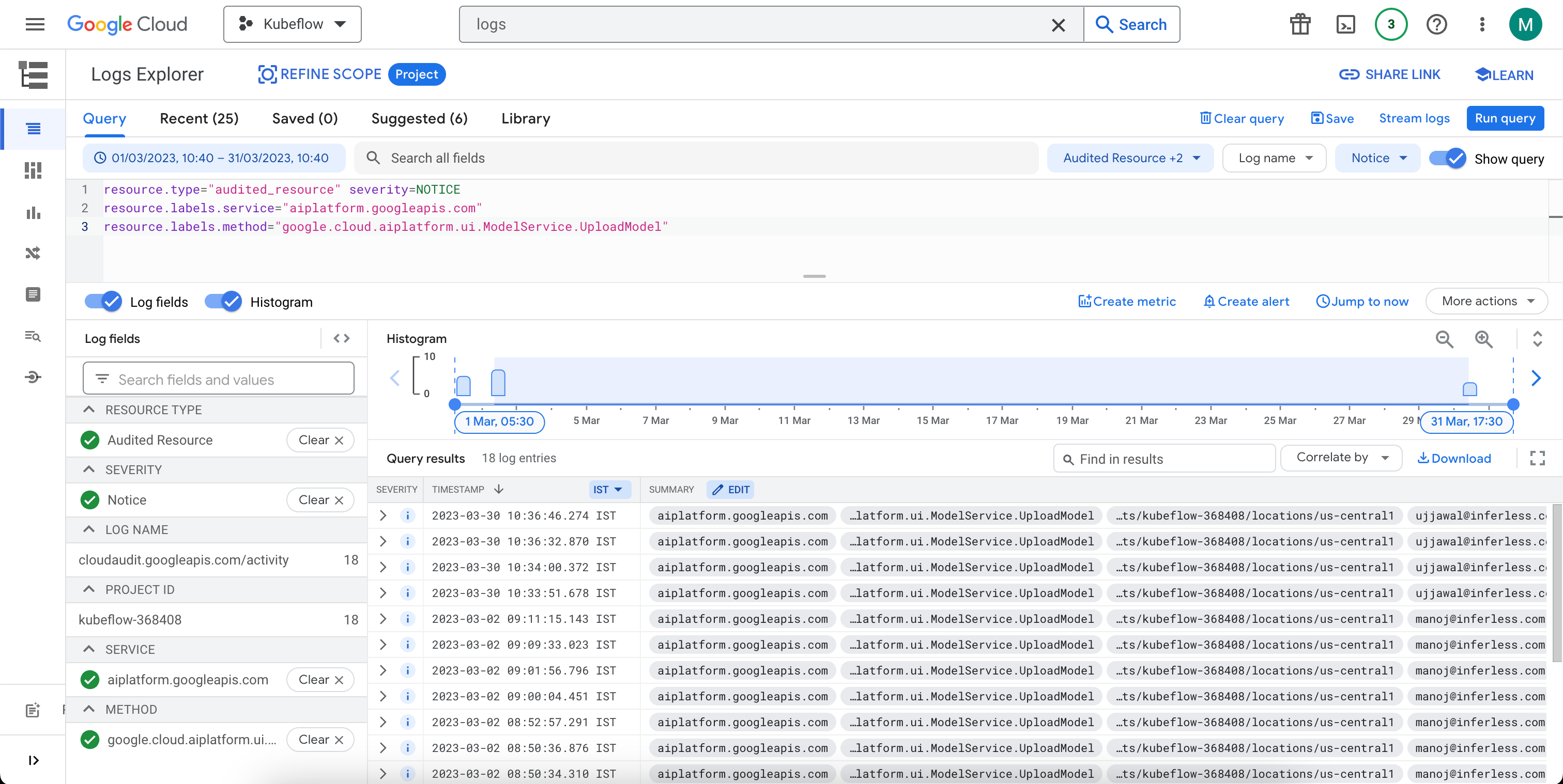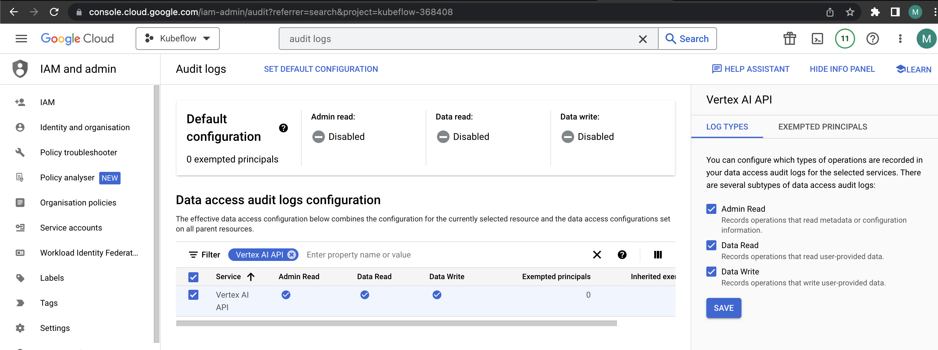 - Enable Audit logs in GCP for AI Platform.